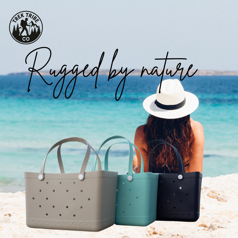 The tote is crafted from premium-grade EVA (Ethylene Vinyl Acetate) — the same material used in rugged outdoor gear and high-performance footwear. It’s naturally shock-absorbent, flexible, and crack-resistant, meaning it can handle sun, salt, sand, and impact without wearing down or breaking apart. This tote is 100% waterproof and UV-resistant.
